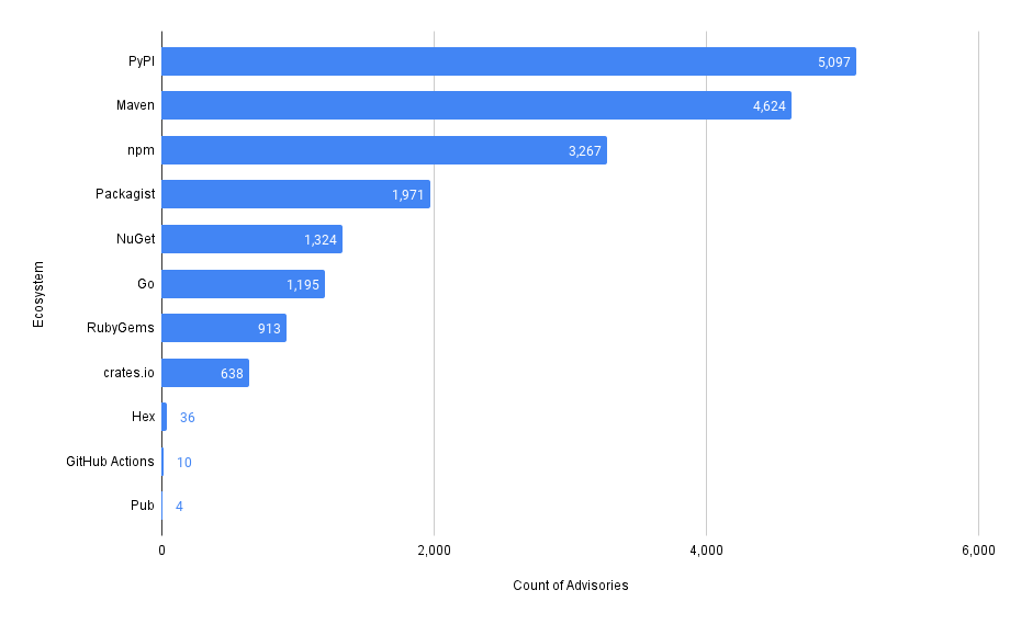 Chart showing the number of advisories by ecosystem