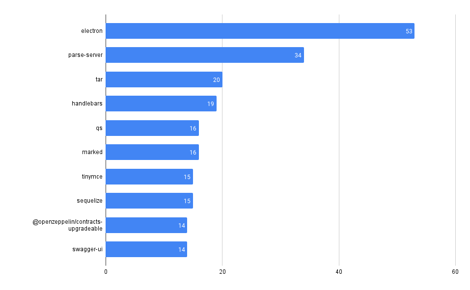 Chart showing the number of advisories by package in the npm ecosystem