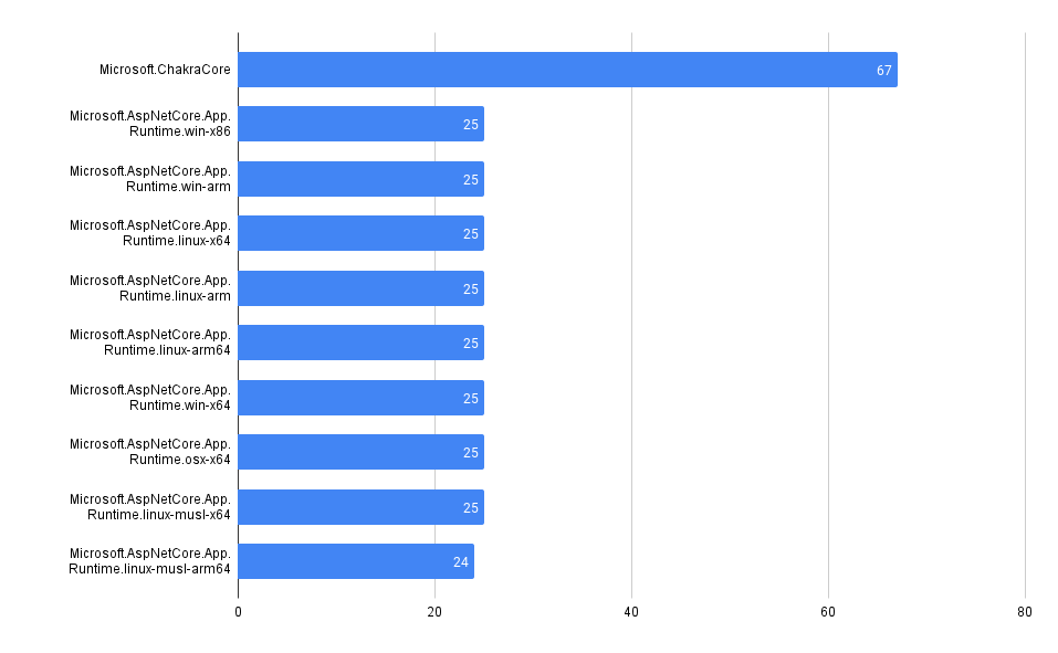 Chart showing the number of advisories by package in the NuGet ecosystem