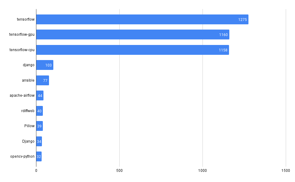 Chart showing the number of advisories by package in the PyPI ecosystem