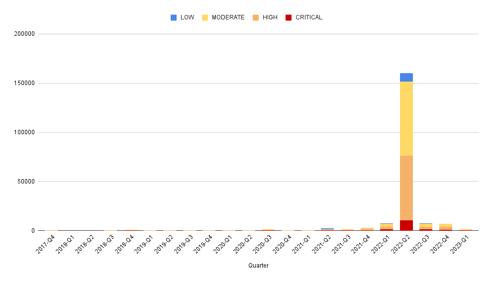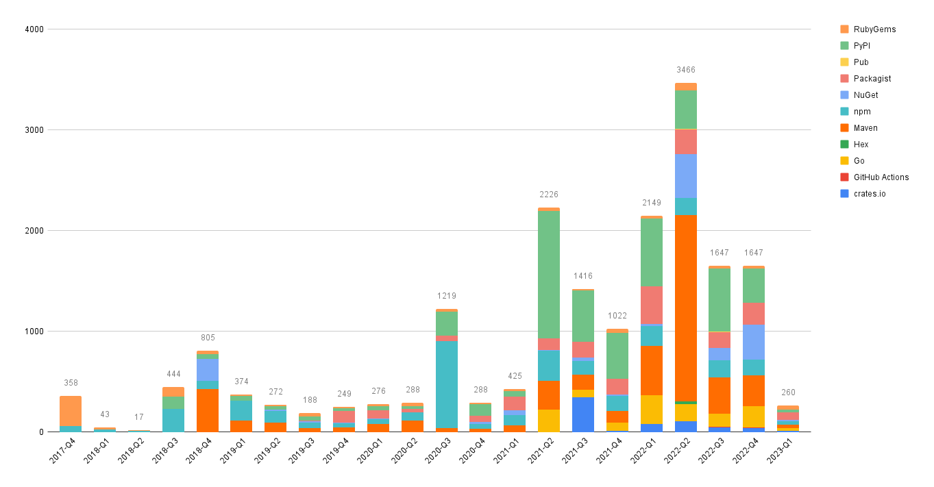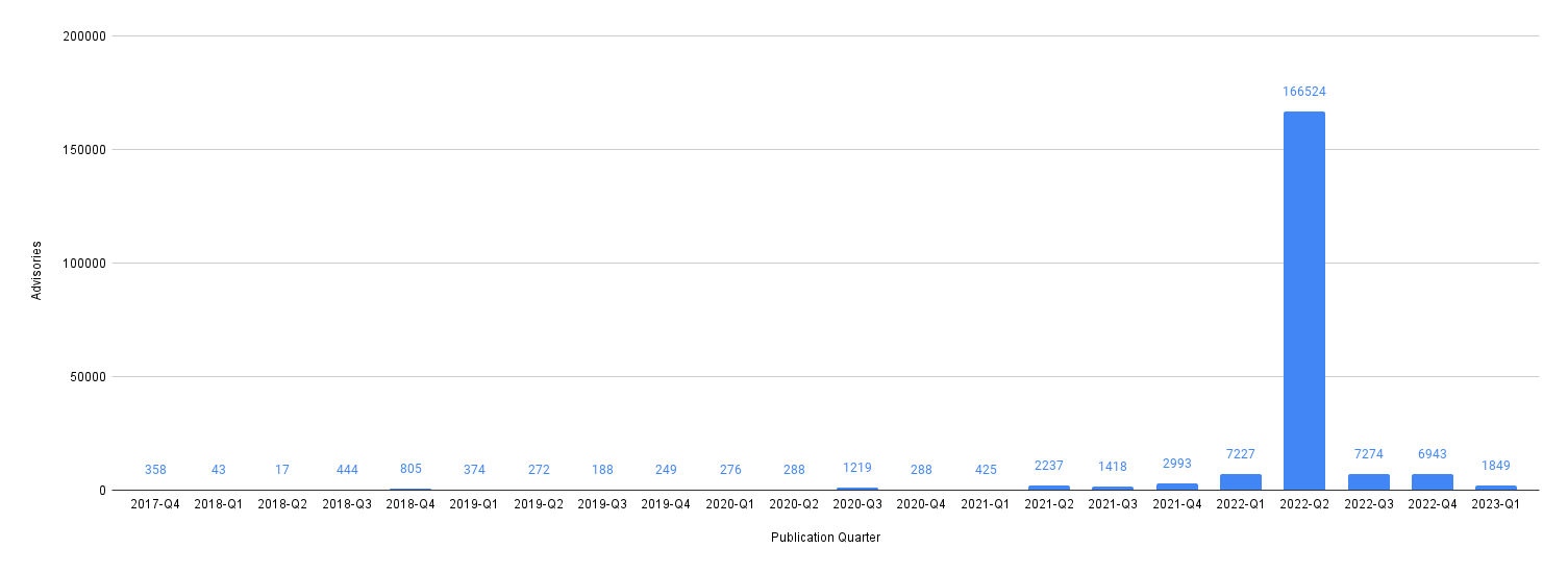 Looks like a ton of advisories were published in Q2 2022, making it hard to see overall trends.